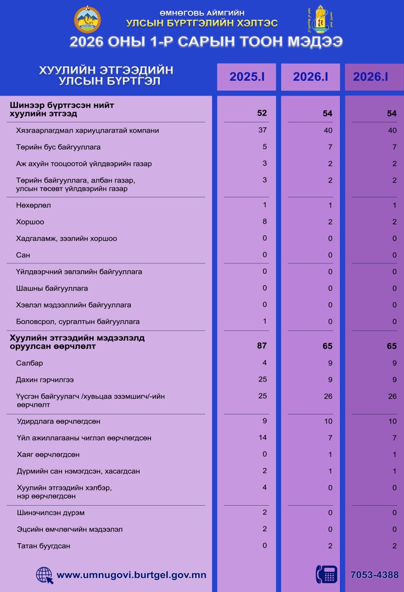 2026 оны 1 дүгээр сарын тоон мэдээ